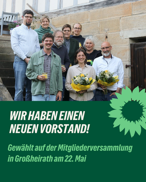 | Im Mai stand unsere große Mitgliederversammlung an. Dabei standen einige Wahlen auf dem Plan. Neben den Delegierten der verschiedenen politischen Ebenen, wurde auch ein neuer Kreisvorstand gewählt. Dieser setzt sich aus den Sprecher*innen Vera Schaller und Christian Koch, dem Kassier Sven Sakowski, der Schriftführerin Martina Bönig sowie den Beisitzer*innen Susanne Esslinger, Karin Ritz, Bianca Wirth, Jonas Stüllein und Andreas Kleist zusammen. Der neue Vorstand freut sich auf die Zusammenarbeit und ein spannendes Kommunalwahljahr! Außerdem wurden nun auch für alle Orte Ortsverantwortliche gewählt, um die Koordinierung innerhalb des großen Landkreises zu verbessern. |